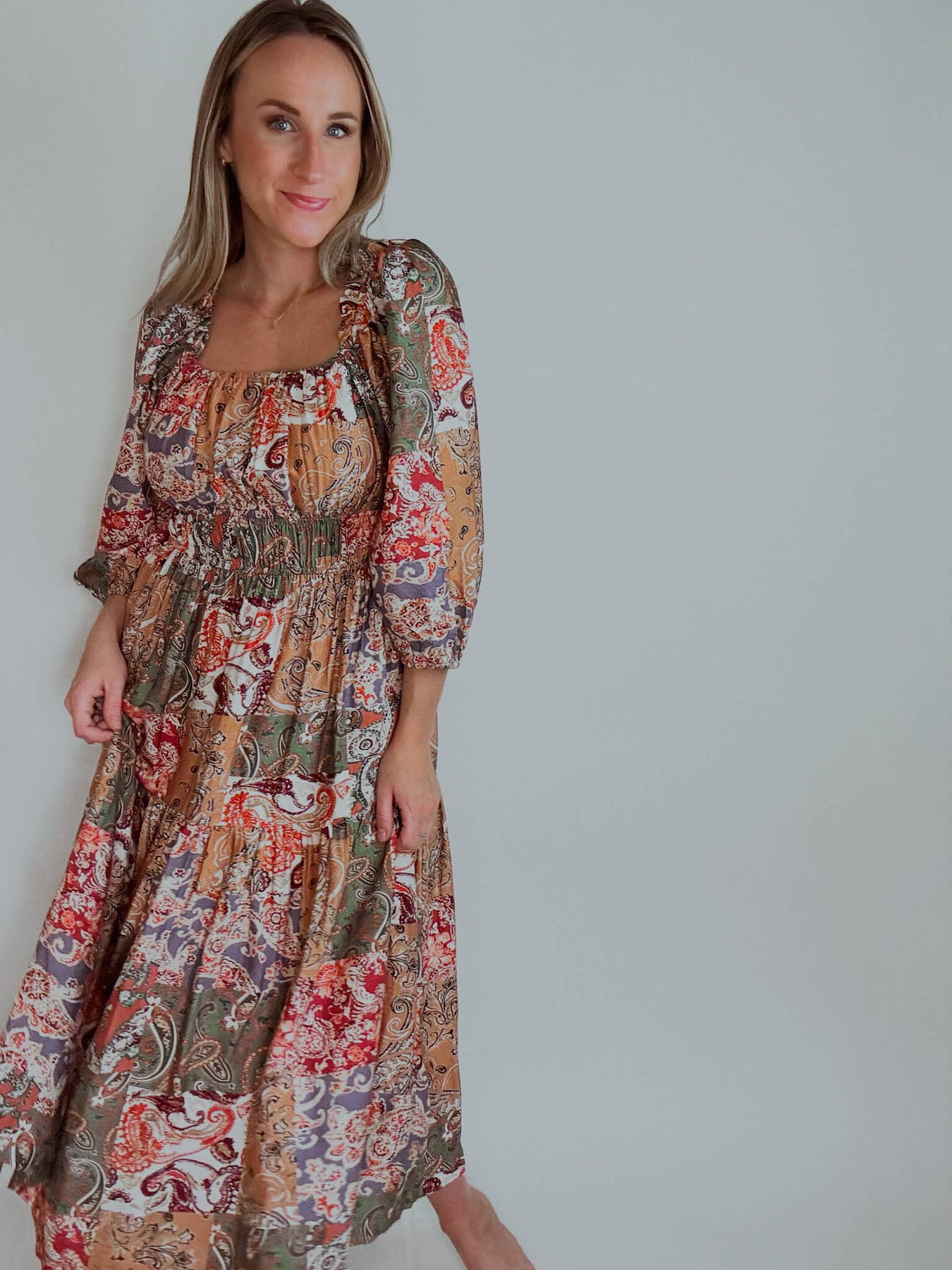 Paisley Mosaic Midi Dress with Pockets