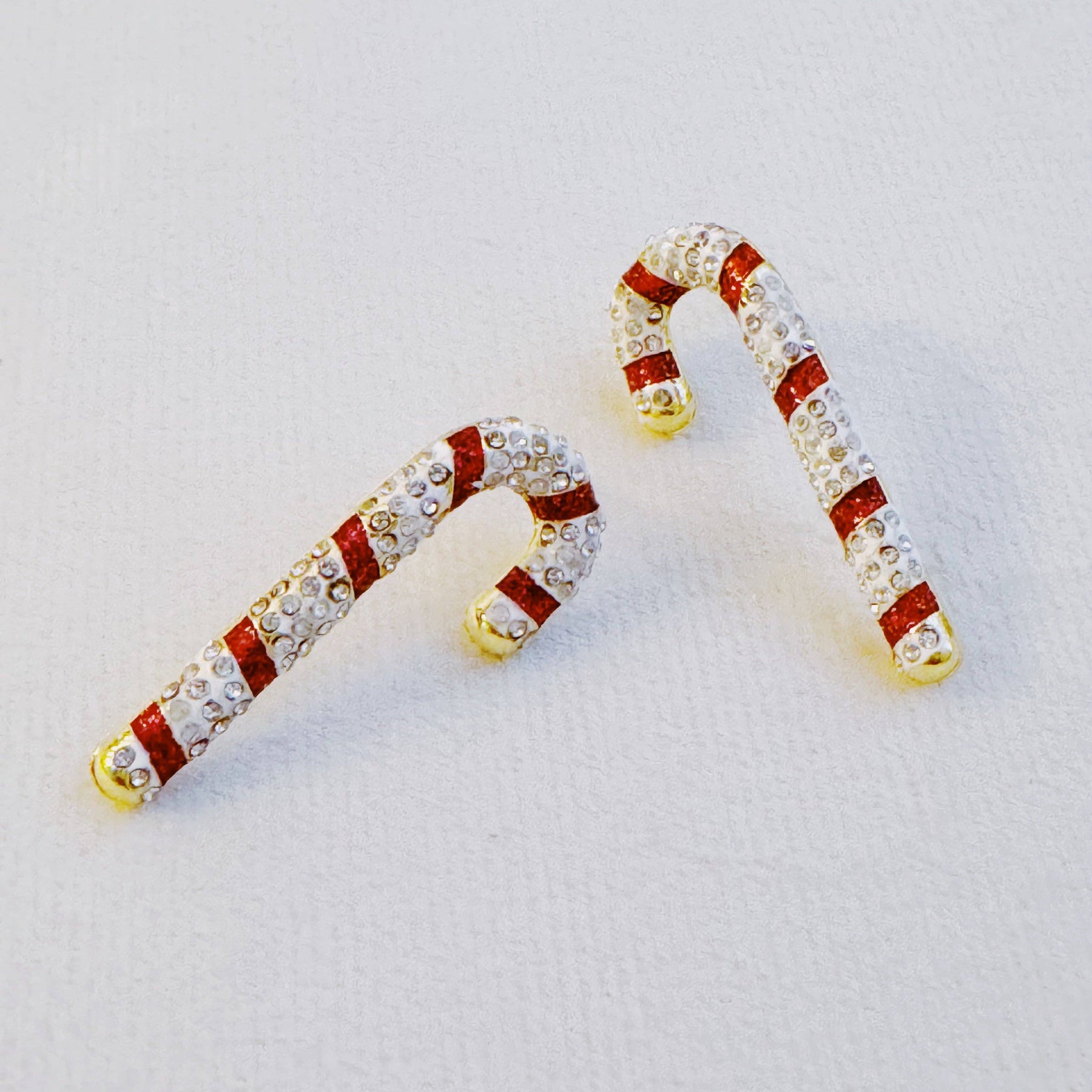 These earrings feature a unique and fun twinkling candy cane design, adding a playful touch to any outfit. With their charming appearance, they are sure to be a perfect addition to any holiday celebration.