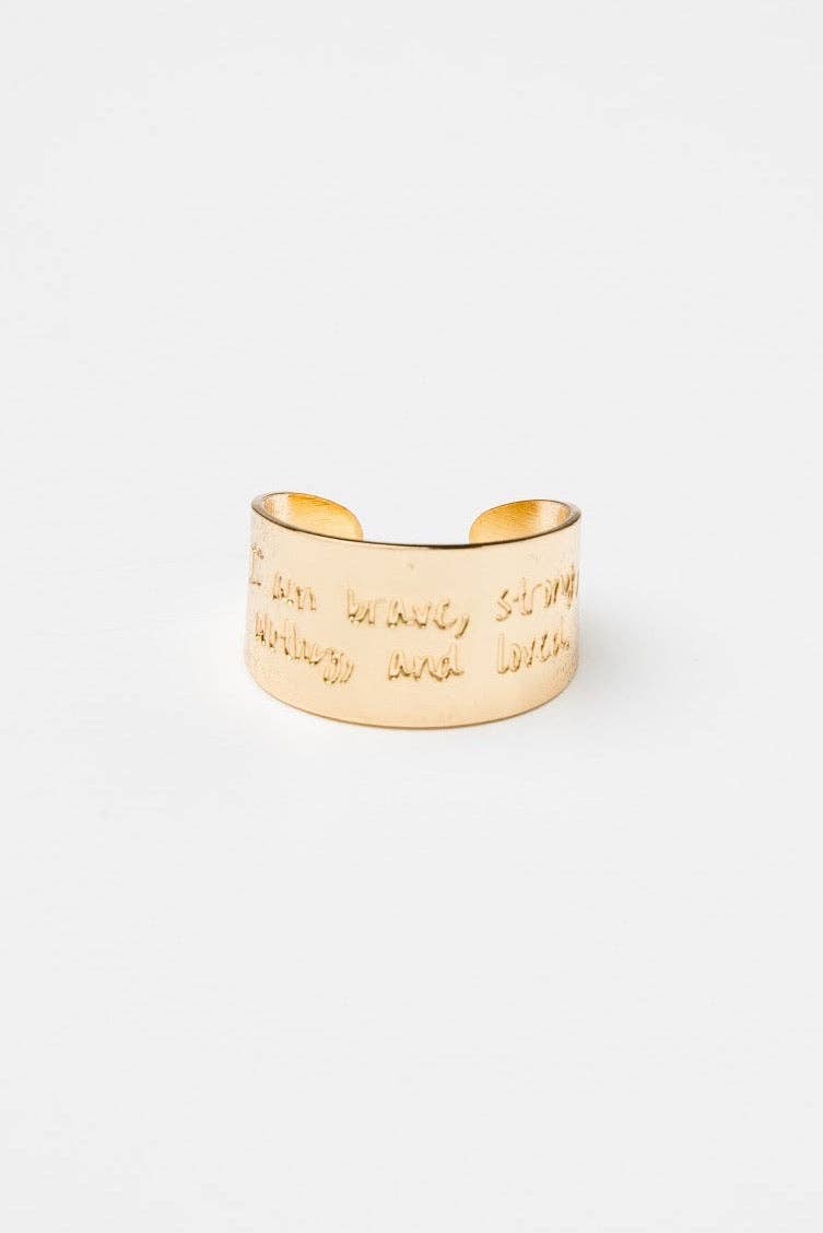 You are brave strong worthy and loved. Style tip: try pairing up the quoted ring with our opal ring, that way your fingers will pop!