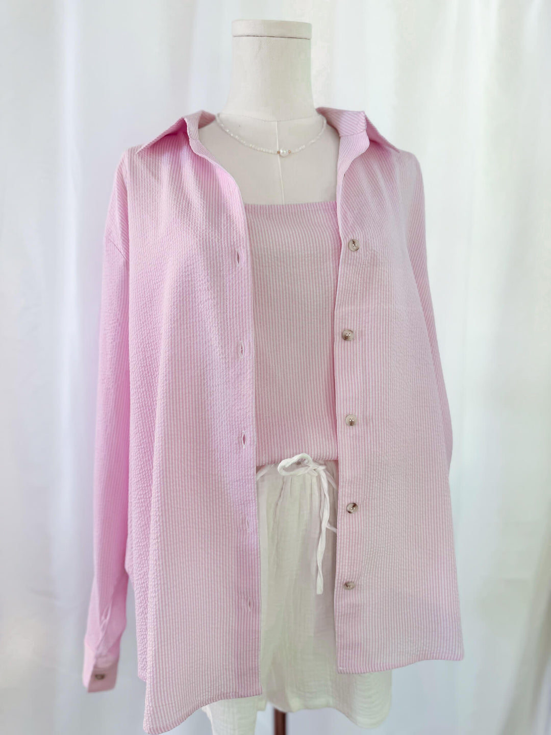 Get ready to turn heads with our Pink Textured Button Up Shirt! Made with a lightweight fabric and a loose fit, this shirt provides all-day comfort and style. Complete the look with our matching cami (sold separately). Stand out from the crowd in this playful and quirky shirt.